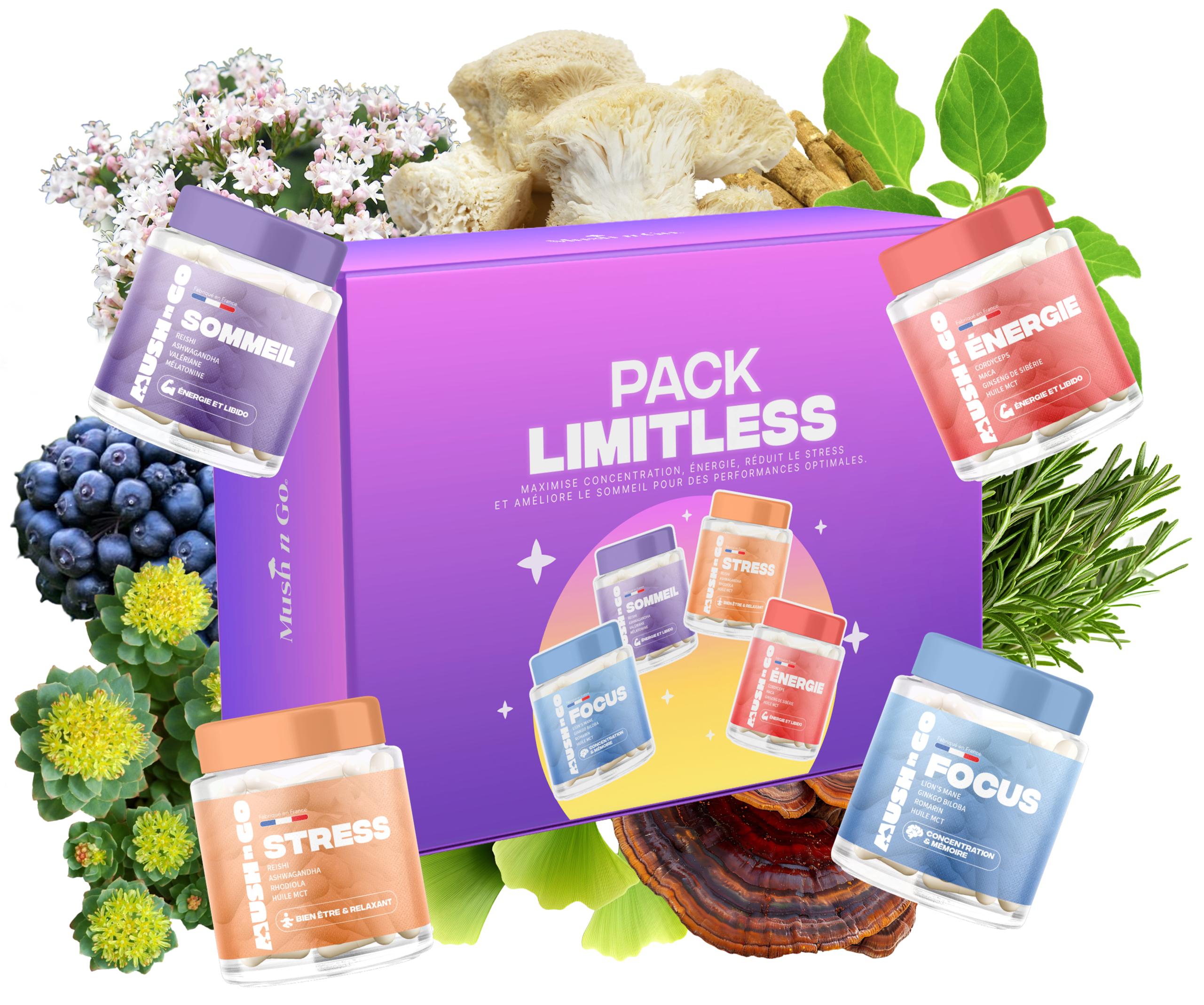 LIMITLESS, C'EST L'ORCHESTRATION COMPLÈTE DE TES FONCTIONS MENTALES - FOCUS, CALME, ÉNERGIE, SOMMEIL - EN ÉQUILIBRE, NATURELLEMENT.